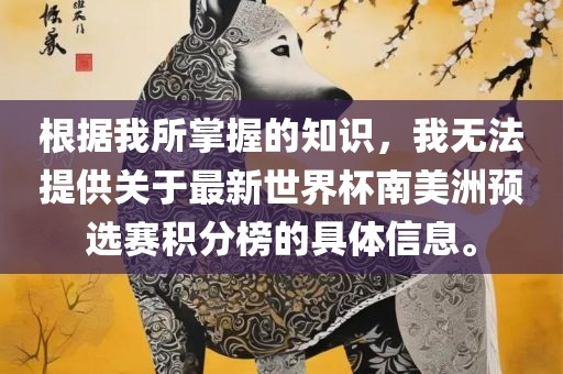 摘要:由于信息更新速度极快,我无法提供最新的世界杯南美洲预选赛积分榜具体信息。建议关注官方渠道或体育新闻以获取最新资讯。
