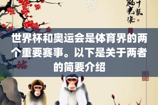 世界杯和奥运会是体育界的两个重要赛事。以下是关于两者的简要介绍