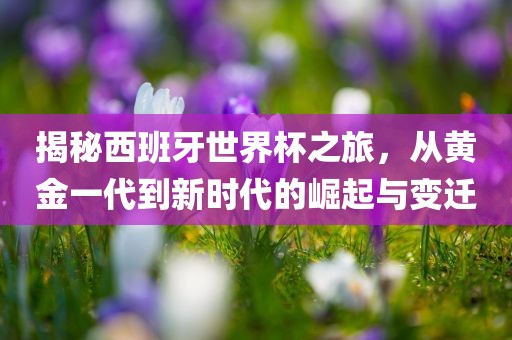 摘要:本文揭示了西班牙世界杯之旅的崛起与变迁,从黄金一代到新时代的历程。文章将探讨西班牙足球的历程,包括其历史成就、球员的更新换代以及近年来在世界杯上的表现。通过深入了解西班牙足球的发展历程,我们可以更好地理解其在世界足坛的地位和影响。