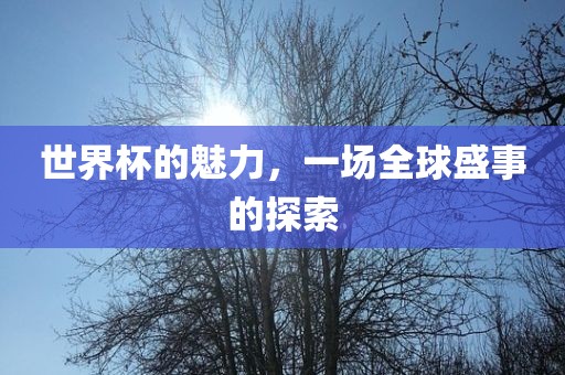 世界杯,这个全球最具盛名的体育赛事之一,已经吸引了无数球迷的目光,作为全球最大的足球比赛,世界杯不仅仅是一场体育竞技的盛宴,更是一次文化、历史和激情的交汇,本文将带您深入了解世界杯的魅力,探索这一全球盛事的背后故事。