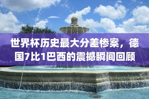 世界杯历史上最大分差惨案,德国队以7比1的比分战胜巴西队,回顾这场比赛中的震撼瞬间。这场比赛的胜负悬殊令人难以置信,德国队的强势表现和巴西队的失误成为了球迷们热议的话题。这场比赛不仅创造了世界杯历史上的最大分差纪录,也成为了球迷们永远难忘的回忆。
