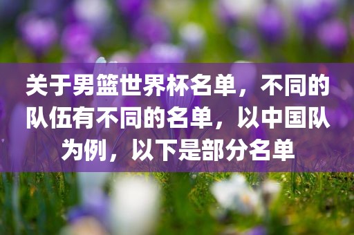 关于男篮世界杯名单,中国队公布了部分名单。不同队伍有不同的名单,竞争激烈。具体名单如下(此处省略具体队员名字),期待他们在世界杯上的表现。