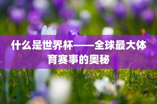 世界杯,这个词汇在全球范围内都如雷贯耳,无人不知无人不晓,究竟什么是世界杯呢?本文将为您揭开世界杯的神秘面纱,带您深入了解这一全球最大体育赛事的起源、发展、赛制以及影响力。