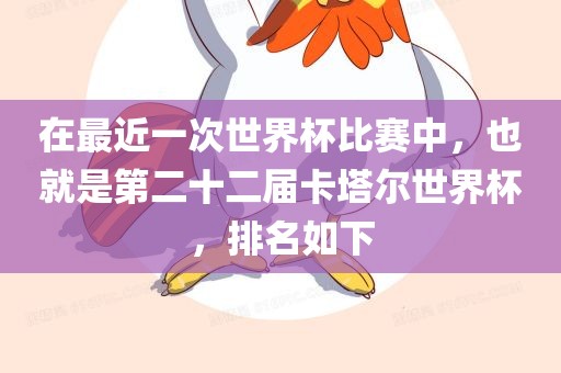 在最近一次世界杯比赛中,也就是第二十二届卡塔尔世界杯,排名如下