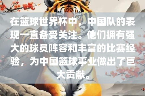 在篮球世界杯中,中国队的表现一直备受关注。他们拥有强大的球员阵容和丰富的比赛经验,为中国篮球事业做出了巨大贡献。