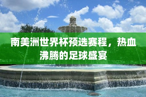 南美洲世界杯预选赛程是一场热血沸腾的足球盛宴,让我们共同期待这场盛宴的到来,让我们为心中的球队加油助威,感受足球的魅力,享受这场足球盛宴,让我们共同见证哪些球队能够晋级到世界杯,哪些球员将展现出精彩的表现。