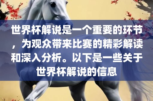 世界杯解说是一个重要的环节,为观众带来比赛的精彩解读和深入分析。以下是一些关于世界杯解说的信息