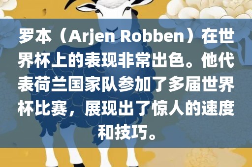 罗本在世界杯上的最佳表现之一是在2010年南非世界杯上,他作为荷兰国家队的核心球员之一,帮助球队在比赛中取得了出色的成绩,在那届比赛中,罗本以其惊人的速度和突破能力成为了球队进攻端的重要武器,并在多场比赛中为球队创造了很多进球机会。