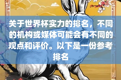 关于世界杯实力的排名,不同的机构或媒体可能会有不同的观点和评价。以下是一份参考排名
