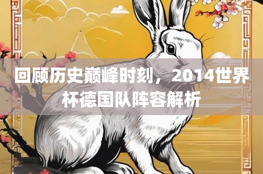 摘要:回顾2014年世界杯德国队的巅峰时刻,其强大阵容令人瞩目。本文解析了这支队伍的特点和优势,探讨了其成功的原因。通过回顾历史,展现了德国队在足球领域的辉煌成就和实力。这支队伍不仅拥有出色的球员个人技术,更在团队协作和战术布局上表现出色,成为当时世界杯赛场上的一股强大力量。