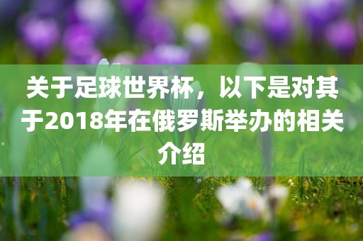 转载请注明来自常熟市高丰毛纺织品有限公司,本文标题:《关于足球世界杯,以下是对其于2018年在俄罗斯举办的相关介绍》