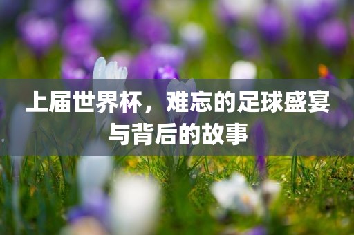 上届世界杯是一场难忘的足球盛宴,留下了无数经典的瞬间和故事,通过回顾这场比赛,我们不仅能够欣赏到足球运动员的精湛技艺,还能感受到足球文化的魅力,上届世界杯也给我们带来了许多启示和思考,让我们更加珍视这项盛事,让我们期待下一届世界杯的到来,共同见证更多的精彩瞬间和故事。