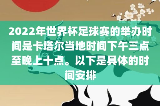 2022年世界杯足球赛的举办时间是卡塔尔当地时间下午三点至晚上十点。以下是具体的时间安排