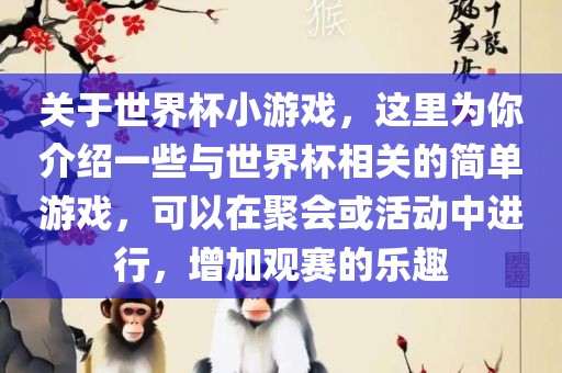 关于世界杯小游戏,这里为你介绍一些与世界杯相关的简单游戏,可以在聚会或活动中进行,增加观赛的乐趣